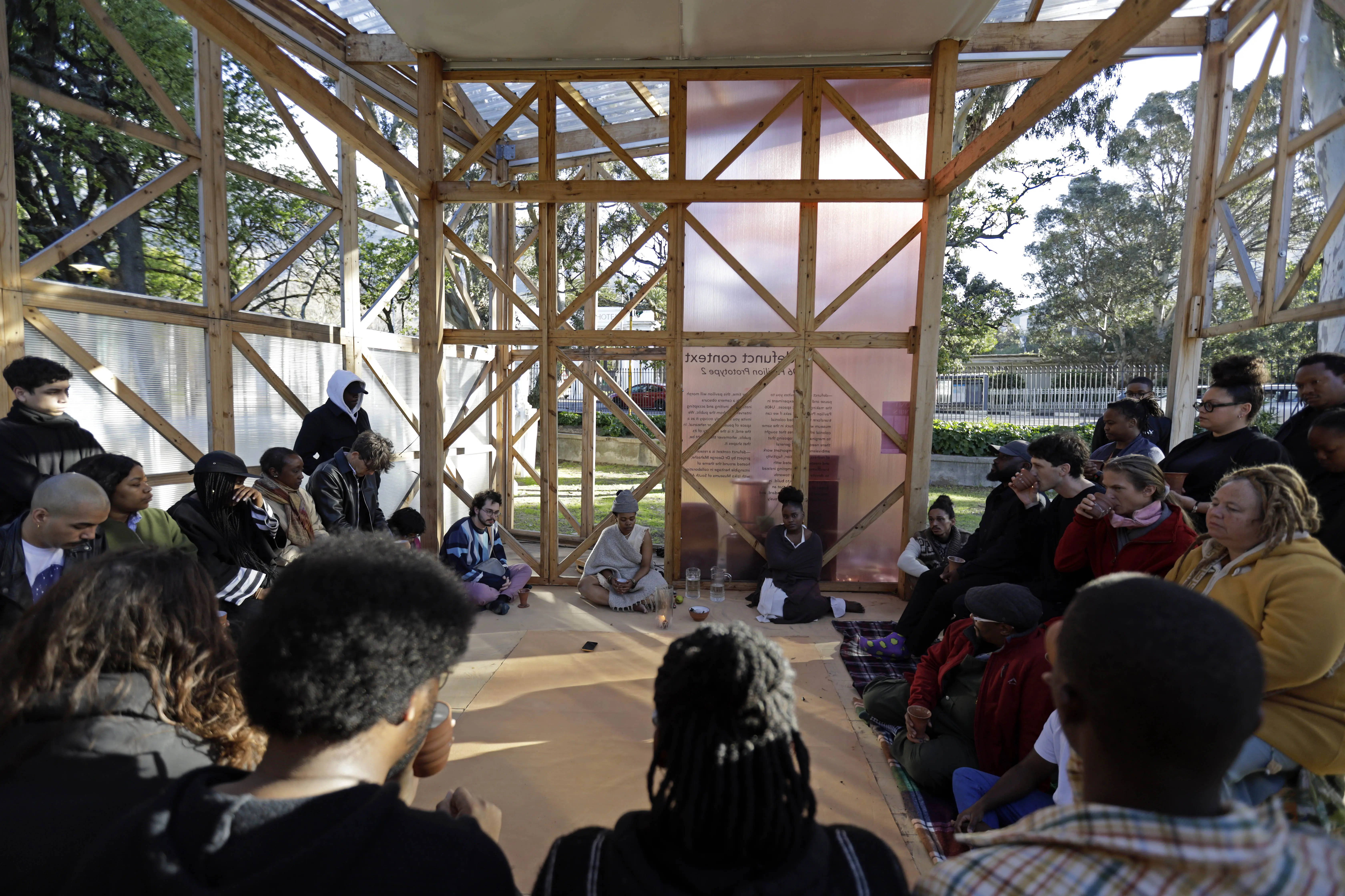 'Energy can neither be created nor destroyed; rather, it can only be transformed or transferred from one form to another'. Makoba’s tea ritual becomes a practice of remembering, re-membering, and being intimately with oneself and the community in this world of poly-crises. The audience is invited to enter her space, share a cup of tea, and engage in conversation. This experiment asks you to witness what Tyson Yunkaporta calls the ‘the law of the first people’ (Yunkaporta, 2020), energy moving from one form to another, to experience time while engaging with herbs (tea). It is intended to be a space for reflection, listening, and cultivating presence.